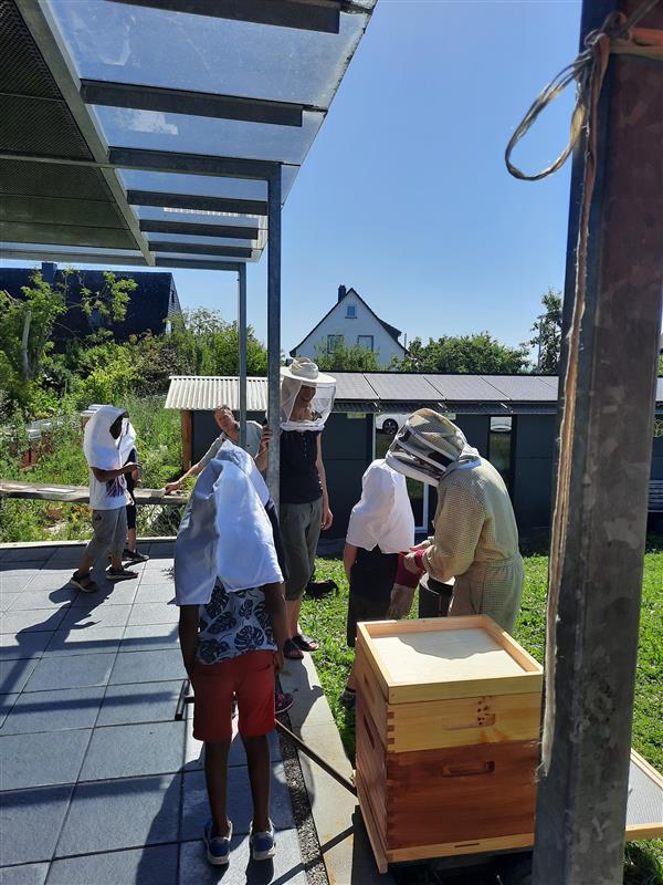 Bisher kommen vor allem die Schülerinnen und Schüler der August-Friedrich-Osswald-Schule, um mit und von den Bienen zu lernen.